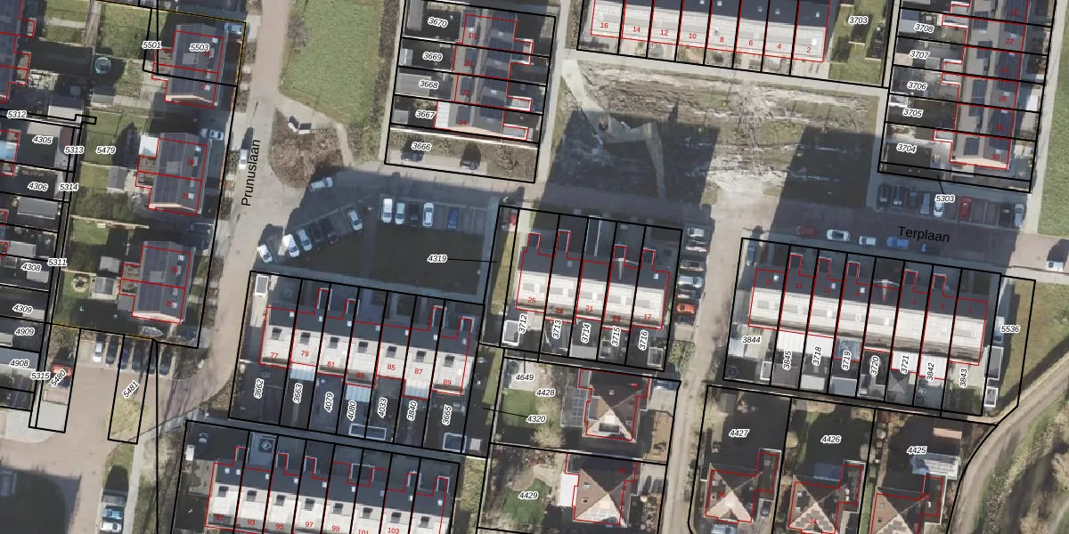 Het perceel waarop Terplaan 25 staat heeft een oppervlakte van 202 m². Dit is een middelgroot perceel. De perceeloppervlakte wordt geregistreerd door het Kadaster. Gedetailleerde informatie over de maten van dit perceel kunt u vinden in het rapport Kadastrale kaart met maatvoering van Terplaan 25.