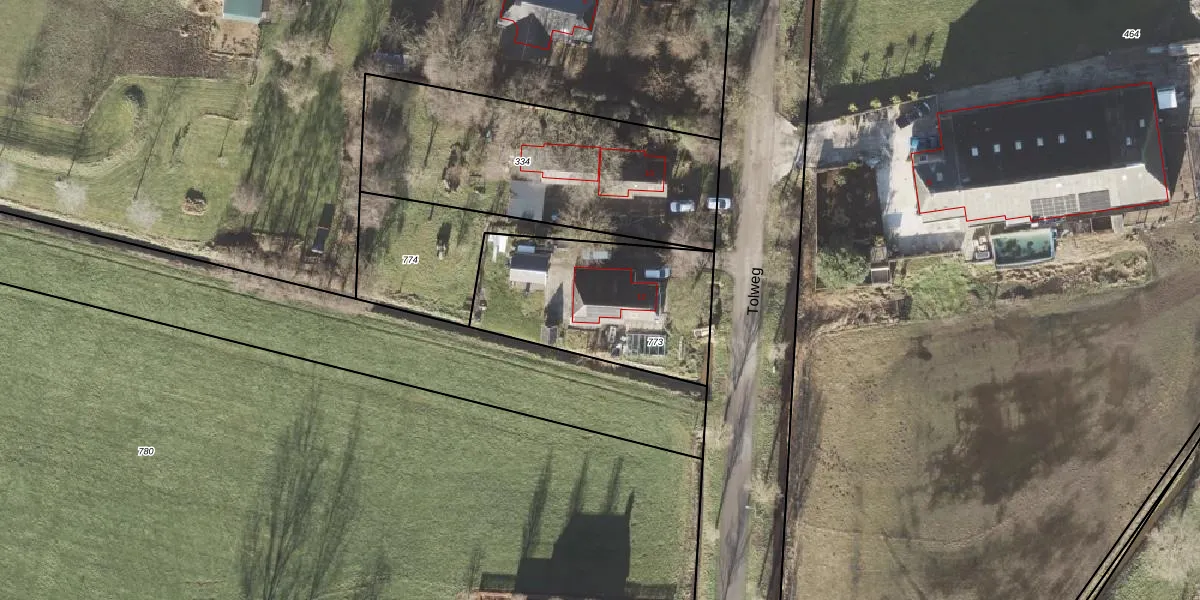 Het perceel waarop Tolweg 12 staat heeft een oppervlakte van 755 m². Dit is een groot perceel. De perceeloppervlakte wordt geregistreerd door het Kadaster. Gedetailleerde informatie over de maten van dit perceel kunt u vinden in het rapport Kadastrale kaart met maatvoering van Tolweg 12.