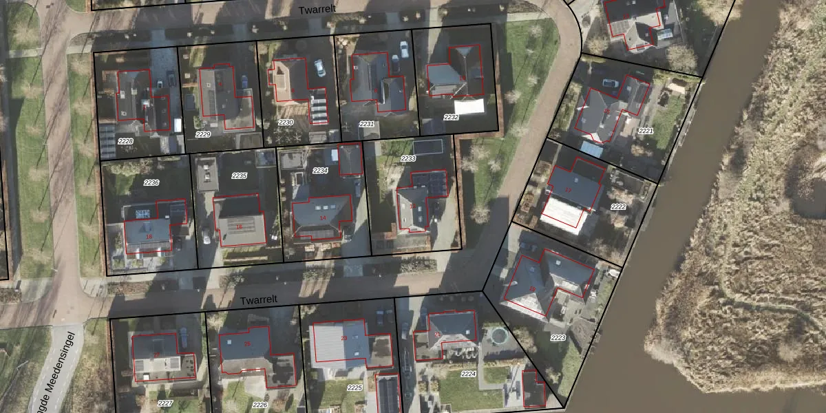 Het perceel waarop Twarrelt 12 staat heeft een oppervlakte van 616 m². Dit is een groot perceel. De perceeloppervlakte wordt geregistreerd door het Kadaster. Gedetailleerde informatie over de maten van dit perceel kunt u vinden in het rapport Kadastrale kaart met maatvoering van Twarrelt 12.