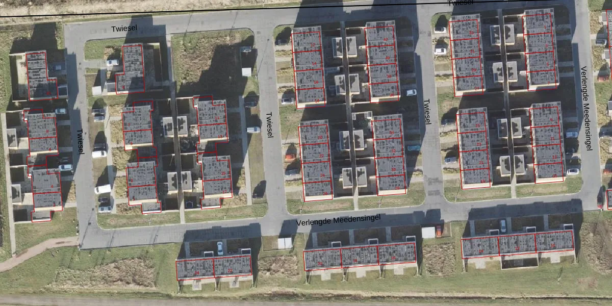 Het perceel waarop Twiesel 22 staat heeft een oppervlakte van 5,3 ha. Dit is een zeer groot perceel. De perceeloppervlakte wordt geregistreerd door het Kadaster. Gedetailleerde informatie over de maten van dit perceel kunt u vinden in het rapport Kadastrale kaart met maatvoering van Twiesel 22.