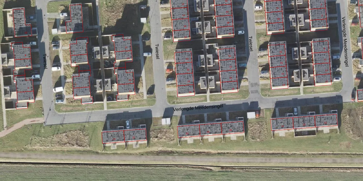 Het perceel waarop Twiesel 26 staat heeft een oppervlakte van 5,3 ha. Dit is een zeer groot perceel. De perceeloppervlakte wordt geregistreerd door het Kadaster. Gedetailleerde informatie over de maten van dit perceel kunt u vinden in het rapport Kadastrale kaart met maatvoering van Twiesel 26.