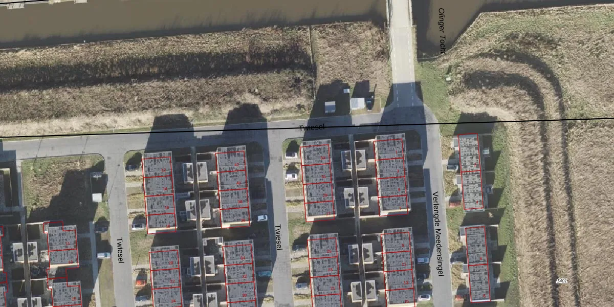 Het perceel waarop Twiesel 33 staat heeft een oppervlakte van 5,3 ha. Dit is een zeer groot perceel. De perceeloppervlakte wordt geregistreerd door het Kadaster. Gedetailleerde informatie over de maten van dit perceel kunt u vinden in het rapport Kadastrale kaart met maatvoering van Twiesel 33.