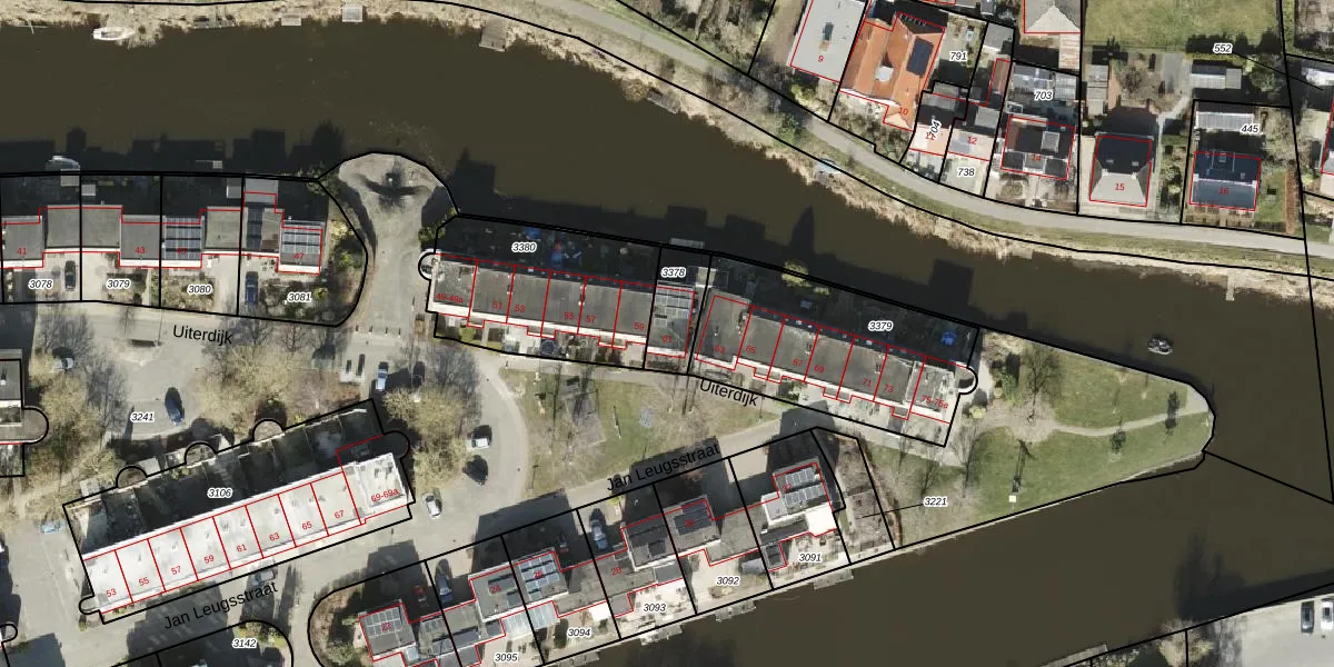 Uiterdijk 61 is gelegen op kadastraal perceel APG00D3378. Deze kadastrale aanduiding is uniek en wordt gebruikt door het Kadaster om eigendomsrechten en andere zakelijke rechten vast te leggen. Het perceel maakt onderdeel uit van de kadastrale gemeente Appingedam.