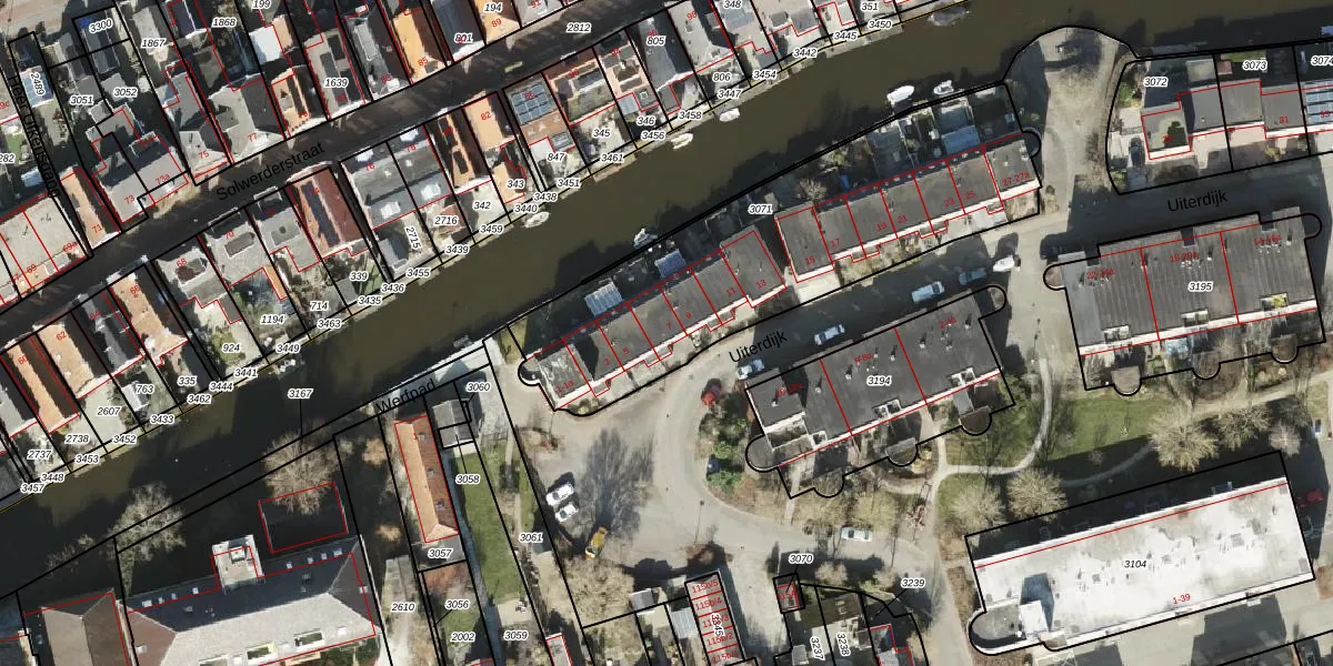 Het perceel waarop Uiterdijk 7 staat heeft een oppervlakte van 1545 m². Dit is een zeer groot perceel. De perceeloppervlakte wordt geregistreerd door het Kadaster. Gedetailleerde informatie over de maten van dit perceel kunt u vinden in het rapport Kadastrale kaart met maatvoering van Uiterdijk 7.