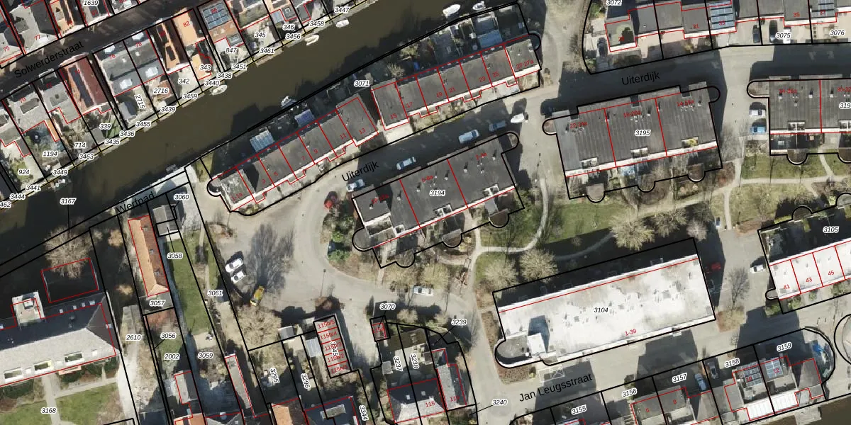 Het perceel waarop Uiterdijk 8 staat heeft een oppervlakte van 704 m². Dit is een groot perceel. De perceeloppervlakte wordt geregistreerd door het Kadaster. Gedetailleerde informatie over de maten van dit perceel kunt u vinden in het rapport Kadastrale kaart met maatvoering van Uiterdijk 8.