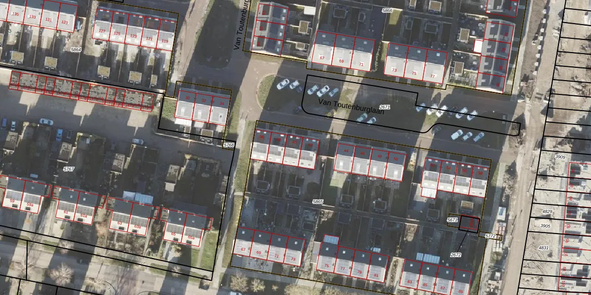 Van Toutenburglaan 40 is gelegen op kadastraal perceel APG00G5865. Deze kadastrale aanduiding is uniek en wordt gebruikt door het Kadaster om eigendomsrechten en andere zakelijke rechten vast te leggen. Het perceel maakt onderdeel uit van de kadastrale gemeente Appingedam.