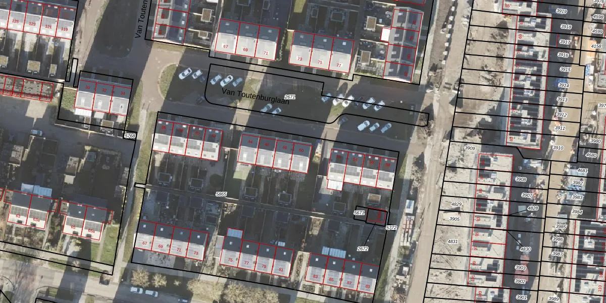 Van Toutenburglaan 50 is gelegen op kadastraal perceel APG00G5865. Deze kadastrale aanduiding is uniek en wordt gebruikt door het Kadaster om eigendomsrechten en andere zakelijke rechten vast te leggen. Het perceel maakt onderdeel uit van de kadastrale gemeente Appingedam.