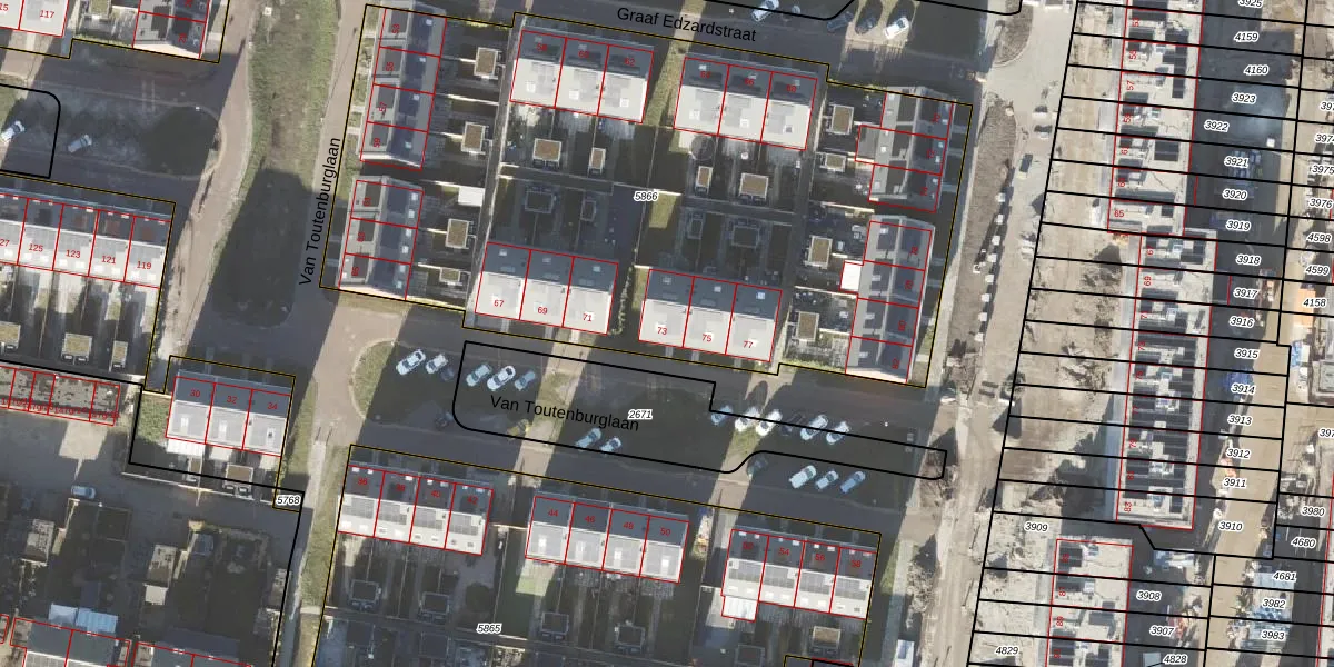 Van Toutenburglaan 73 is gelegen op kadastraal perceel APG00G5866. Deze kadastrale aanduiding is uniek en wordt gebruikt door het Kadaster om eigendomsrechten en andere zakelijke rechten vast te leggen. Het perceel maakt onderdeel uit van de kadastrale gemeente Appingedam.