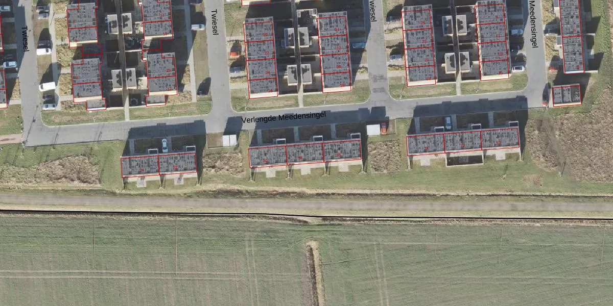 Verlengde Meedensingel 18 is gelegen op kadastraal perceel APG00H1401. Deze kadastrale aanduiding is uniek en wordt gebruikt door het Kadaster om eigendomsrechten en andere zakelijke rechten vast te leggen. Het perceel maakt onderdeel uit van de kadastrale gemeente Appingedam.