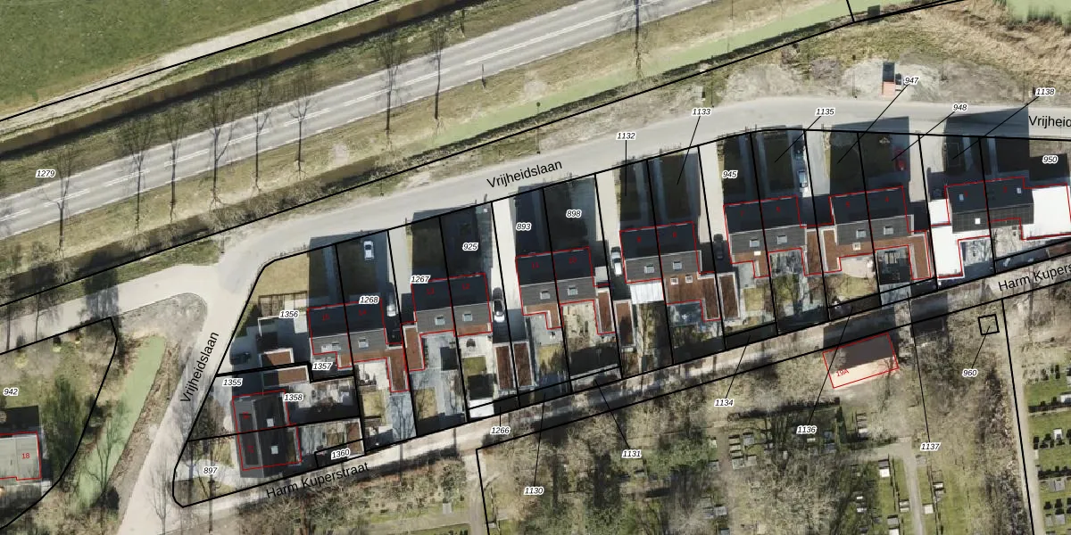 Het perceel waarop Vrijheidslaan 11 staat heeft een oppervlakte van 355 m². Dit is een groot perceel. De perceeloppervlakte wordt geregistreerd door het Kadaster. Gedetailleerde informatie over de maten van dit perceel kunt u vinden in het rapport Kadastrale kaart met maatvoering van Vrijheidslaan 11.