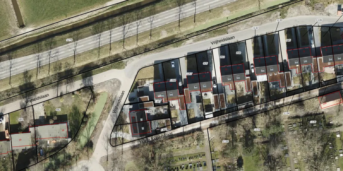 Het perceel waarop Vrijheidslaan 14 staat heeft een oppervlakte van 383 m². Dit is een groot perceel. De perceeloppervlakte wordt geregistreerd door het Kadaster. Gedetailleerde informatie over de maten van dit perceel kunt u vinden in het rapport Kadastrale kaart met maatvoering van Vrijheidslaan 14.