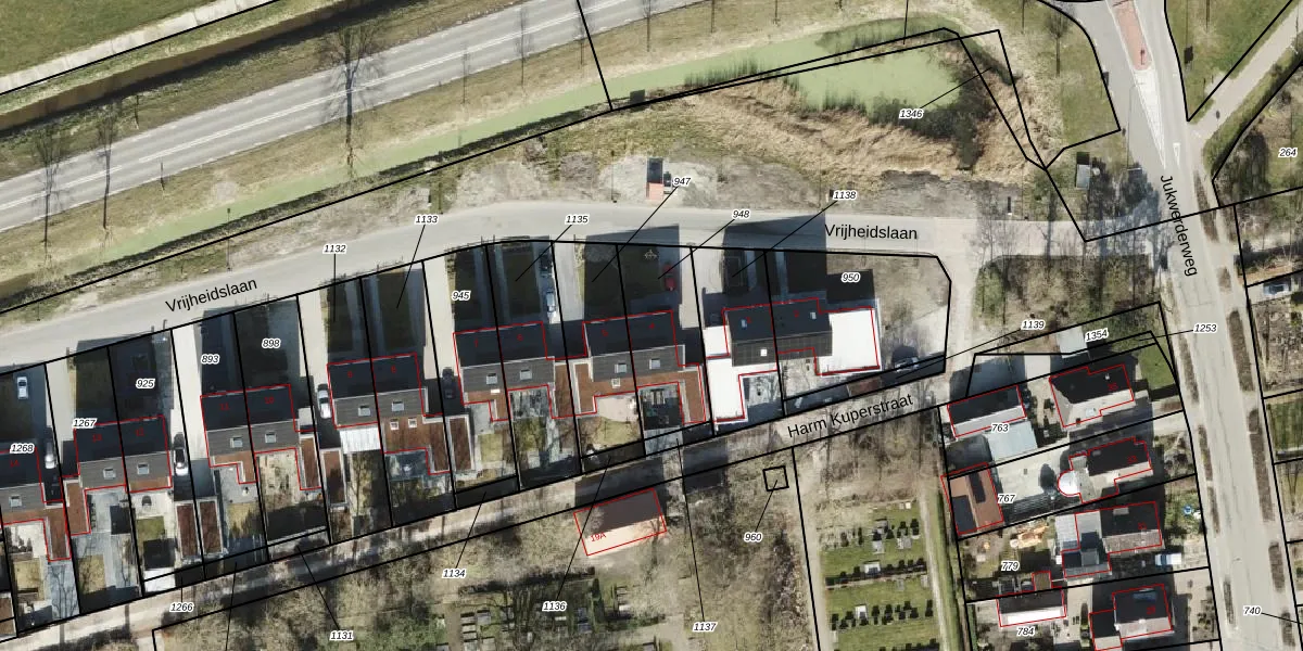 Het perceel waarop Vrijheidslaan 4 staat heeft een oppervlakte van 310 m². Dit is een groot perceel. De perceeloppervlakte wordt geregistreerd door het Kadaster. Gedetailleerde informatie over de maten van dit perceel kunt u vinden in het rapport Kadastrale kaart met maatvoering van Vrijheidslaan 4.
