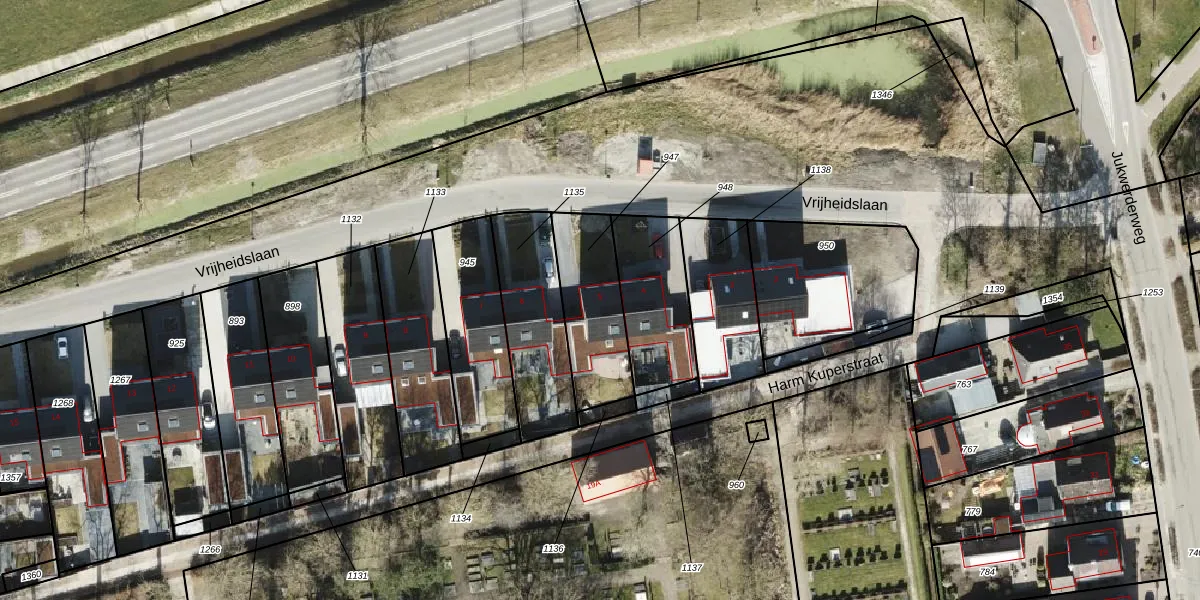 Het perceel waarop Vrijheidslaan 5 staat heeft een oppervlakte van 310 m². Dit is een groot perceel. De perceeloppervlakte wordt geregistreerd door het Kadaster. Gedetailleerde informatie over de maten van dit perceel kunt u vinden in het rapport Kadastrale kaart met maatvoering van Vrijheidslaan 5.
