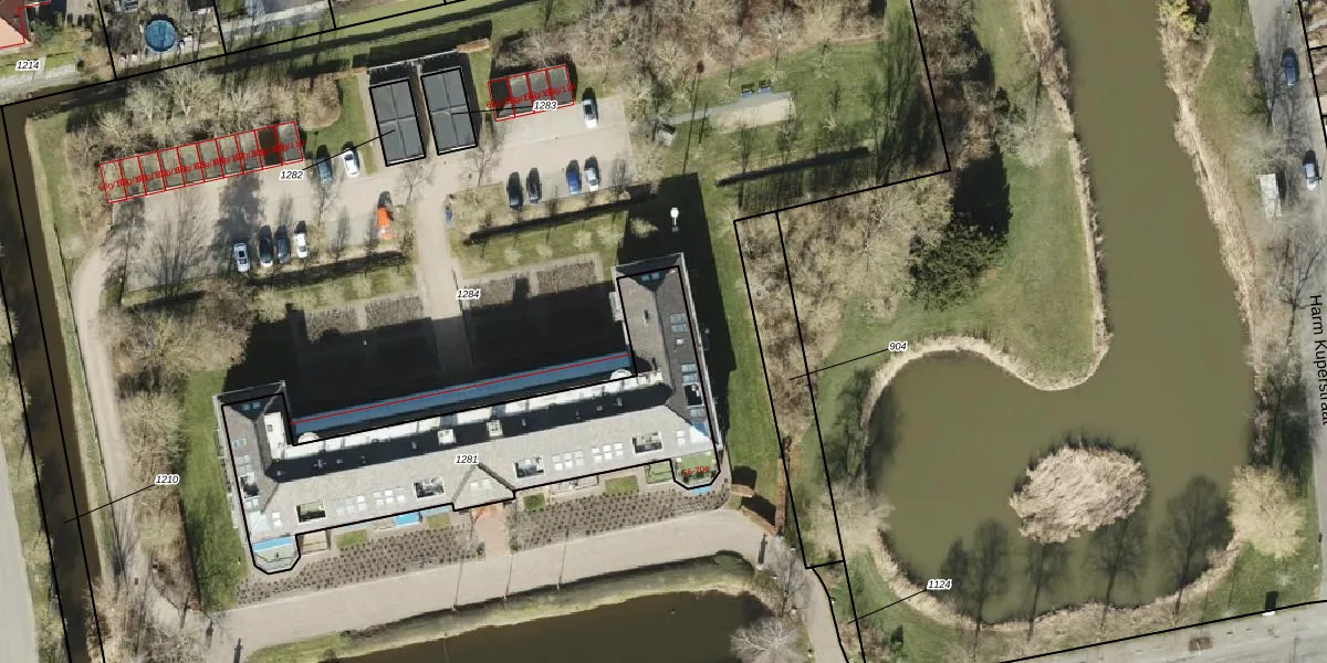 Het adres is gelegen op perceel 1281 in de sectie B en de kadastrale gemeente Appingedam. De kadastrale aanduiding is aldus APG00-B-1281. Het perceel is kleiner dan gemiddeld in Appingedam. Het perceel is 1243 m² groot, terwijl het gemiddelde ligt op 4061,11 m². Het grootste perceel in de kadastrale gemeente is 37,3 ha. Het kleinste perceel heeft een oppervlakte van 0 m². Op het perceel liggen in totaal 24 adressen. De huidige grenzen van het perceel zijn digitaal in de Basisregistratie Kadaster (BRK) geregistreerd op 24-06-2002.