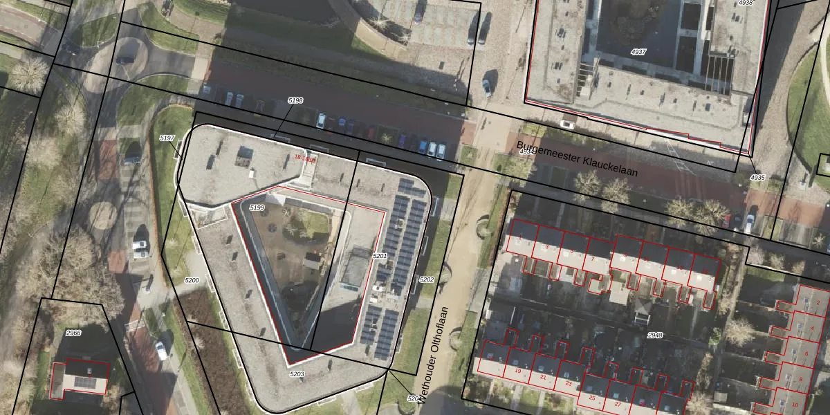 Wethouder Olthoflaan 2 is gelegen op kadastraal perceel APG00G5201. Deze kadastrale aanduiding is uniek en wordt gebruikt door het Kadaster om eigendomsrechten en andere zakelijke rechten vast te leggen. Het perceel maakt onderdeel uit van de kadastrale gemeente Appingedam.