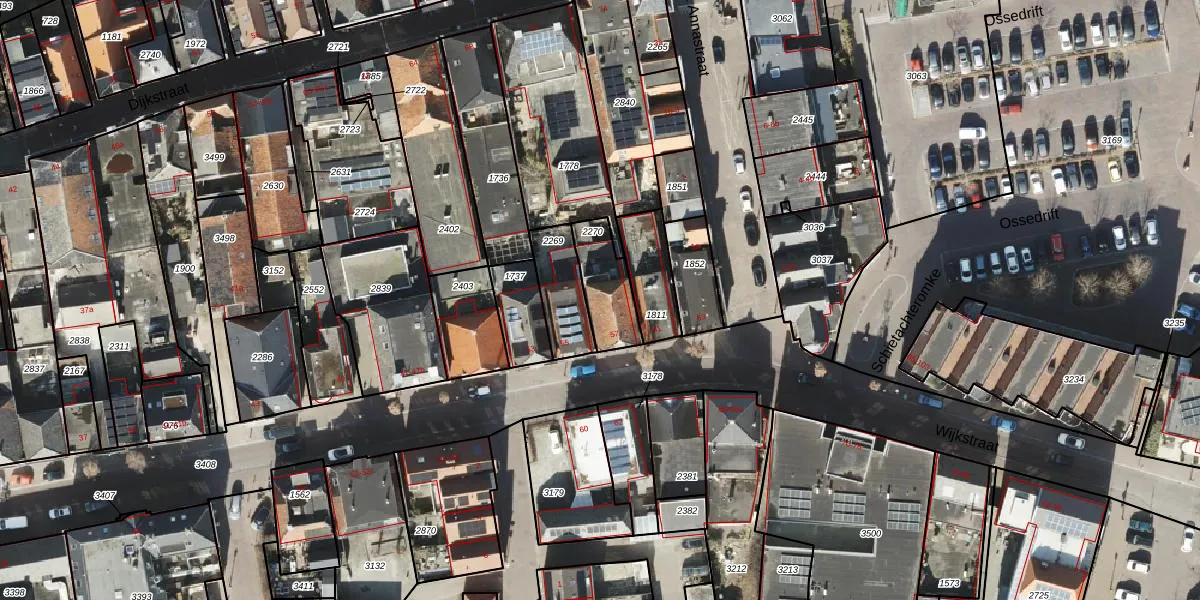 Gebruik de zoekbalk of klik op een perceel voor informatie over de adressen binnen dit perceel.