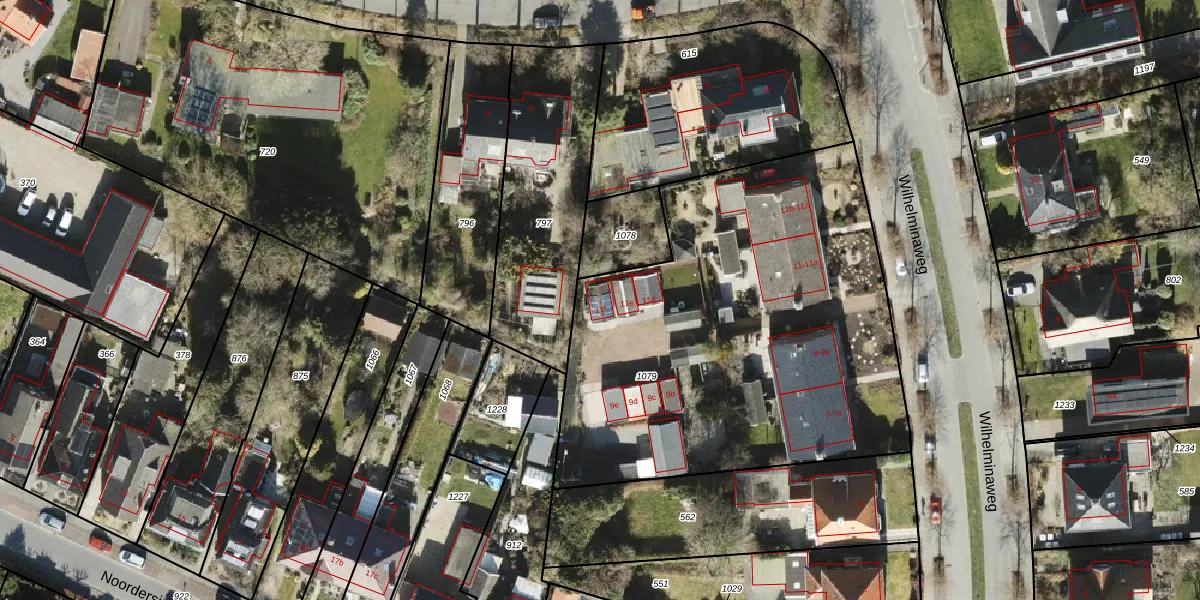 Het perceel waarop Wilhelminaweg 11-f staat heeft een oppervlakte van 2438 m². Dit is een zeer groot perceel. De perceeloppervlakte wordt geregistreerd door het Kadaster. Gedetailleerde informatie over de maten van dit perceel kunt u vinden in het rapport Kadastrale kaart met maatvoering van Wilhelminaweg 11-f.