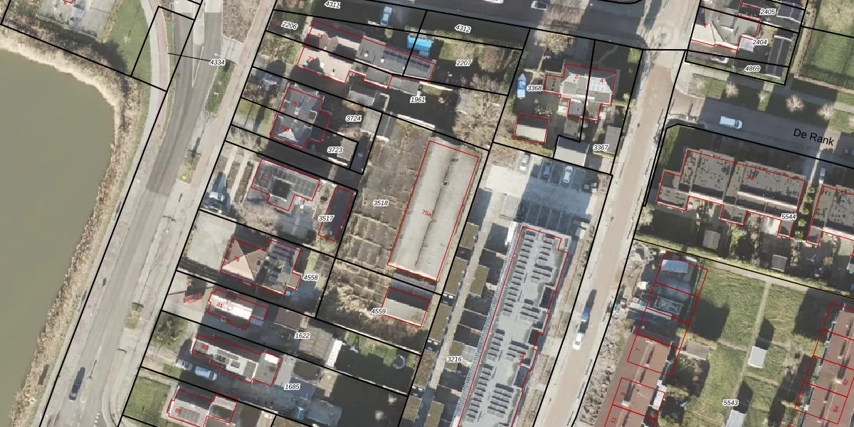 Gebruik de zoekbalk of klik op een perceel voor informatie over de adressen binnen dit perceel.