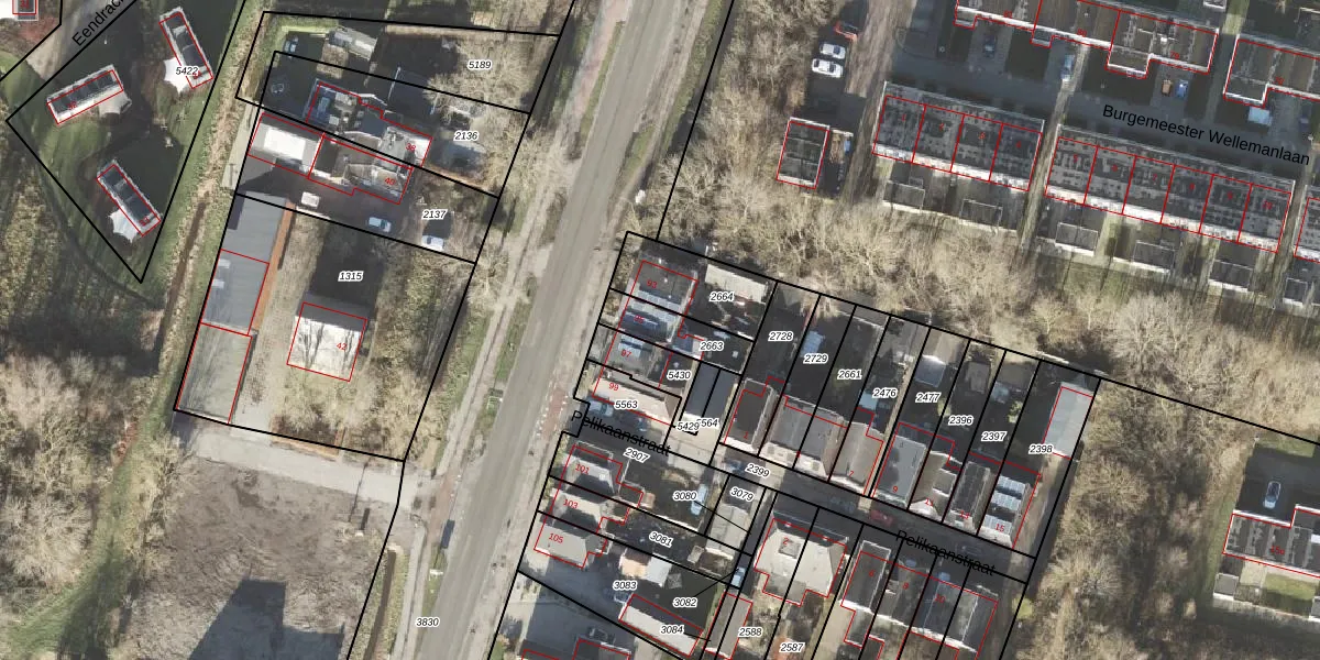 Gebruik de zoekbalk of klik op een perceel voor informatie over de adressen binnen dit perceel.