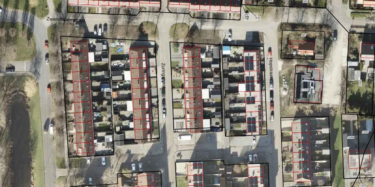 Het perceel waarop Zuringstraat 9 staat heeft een oppervlakte van 1185 m². Dit is een zeer groot perceel. De perceeloppervlakte wordt geregistreerd door het Kadaster. Gedetailleerde informatie over de maten van dit perceel kunt u vinden in het rapport Kadastrale kaart met maatvoering van Zuringstraat 9.
