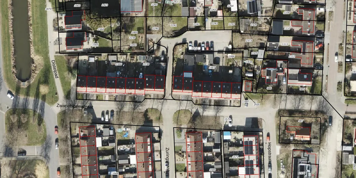 Zwanebloemstraat 16 is gelegen op kadastraal perceel APG00H1567. Deze kadastrale aanduiding is uniek en wordt gebruikt door het Kadaster om eigendomsrechten en andere zakelijke rechten vast te leggen. Het perceel maakt onderdeel uit van de kadastrale gemeente Appingedam.