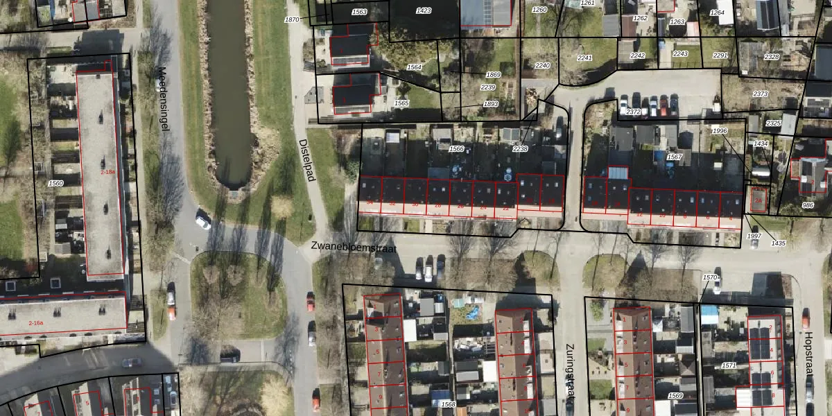 Het perceel waarop Zwanebloemstraat 30 staat heeft een oppervlakte van 1357 m². Dit is een zeer groot perceel. De perceeloppervlakte wordt geregistreerd door het Kadaster. Gedetailleerde informatie over de maten van dit perceel kunt u vinden in het rapport Kadastrale kaart met maatvoering van Zwanebloemstraat 30.