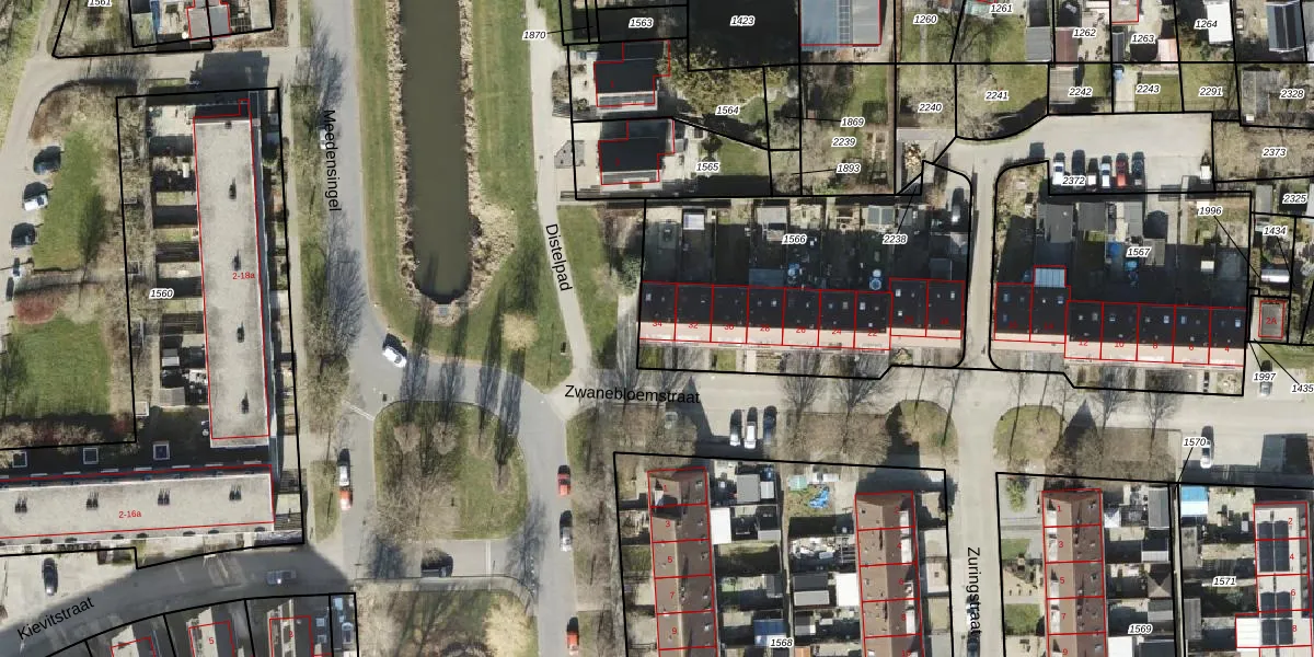 Het perceel waarop Zwanebloemstraat 34 staat heeft een oppervlakte van 1357 m². Dit is een zeer groot perceel. De perceeloppervlakte wordt geregistreerd door het Kadaster. Gedetailleerde informatie over de maten van dit perceel kunt u vinden in het rapport Kadastrale kaart met maatvoering van Zwanebloemstraat 34.