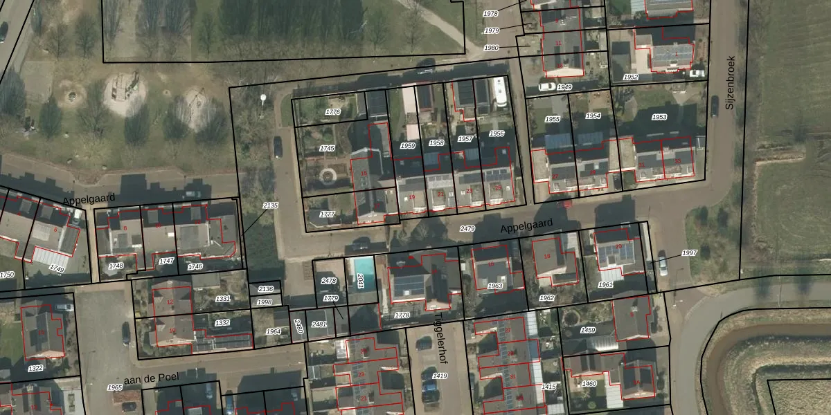 Het perceel waarop Appelgaard 19 staat heeft een oppervlakte van 223 m². Dit is een middelgroot perceel. De perceeloppervlakte wordt geregistreerd door het Kadaster. Gedetailleerde informatie over de maten van dit perceel kunt u vinden in het rapport Kadastrale kaart met maatvoering van Appelgaard 19.