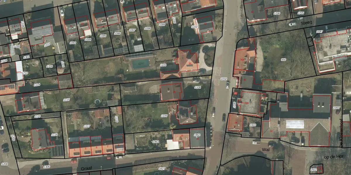 Gebruik de zoekbalk of klik op een perceel voor informatie over de adressen binnen dit perceel.