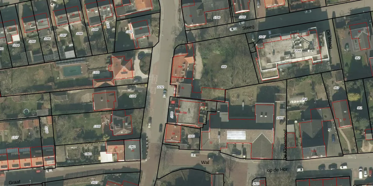 Kerkstraat 30 is gelegen op kadastraal perceel ACN00D956. Deze kadastrale aanduiding is uniek en wordt gebruikt door het Kadaster om eigendomsrechten en andere zakelijke rechten vast te leggen. Het perceel maakt onderdeel uit van de kadastrale gemeente Arcen en Velden.