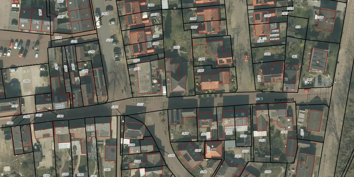 Het perceel waarop Koestraat 29 staat heeft een oppervlakte van 746 m². Dit is een groot perceel. De perceeloppervlakte wordt geregistreerd door het Kadaster. Gedetailleerde informatie over de maten van dit perceel kunt u vinden in het rapport Kadastrale kaart met maatvoering van Koestraat 29.