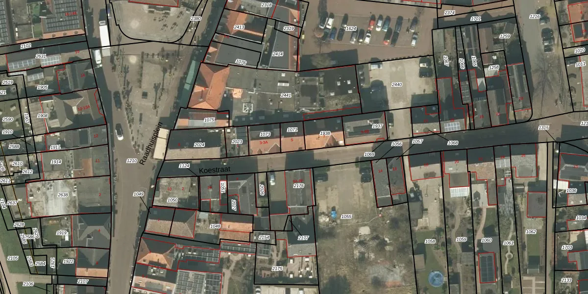 Het perceel waarop Koestraat 5 staat heeft een oppervlakte van 85 m². Dit is een klein perceel. De perceeloppervlakte wordt geregistreerd door het Kadaster. Gedetailleerde informatie over de maten van dit perceel kunt u vinden in het rapport Kadastrale kaart met maatvoering van Koestraat 5.