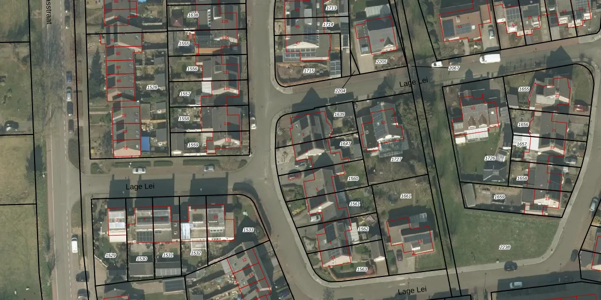 Het perceel waarop Lage Lei 3 staat heeft een oppervlakte van 262 m². Dit is een middelgroot perceel. De perceeloppervlakte wordt geregistreerd door het Kadaster. Gedetailleerde informatie over de maten van dit perceel kunt u vinden in het rapport Kadastrale kaart met maatvoering van Lage Lei 3.