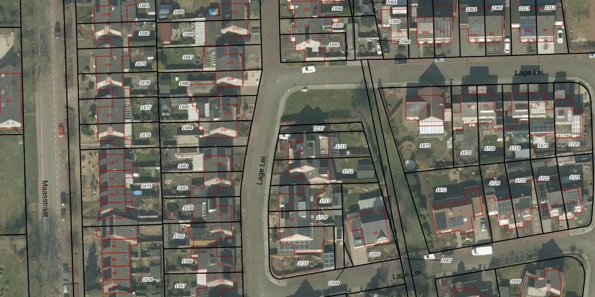 Lage Lei 39 is gelegen op kadastraal perceel ACN00D1711. Deze kadastrale aanduiding is uniek en wordt gebruikt door het Kadaster om eigendomsrechten en andere zakelijke rechten vast te leggen. Het perceel maakt onderdeel uit van de kadastrale gemeente Arcen en Velden.
