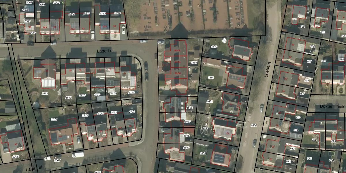 Het perceel waarop Lage Lei 74 staat heeft een oppervlakte van 825 m². Dit is een groot perceel. De perceeloppervlakte wordt geregistreerd door het Kadaster. Gedetailleerde informatie over de maten van dit perceel kunt u vinden in het rapport Kadastrale kaart met maatvoering van Lage Lei 74.