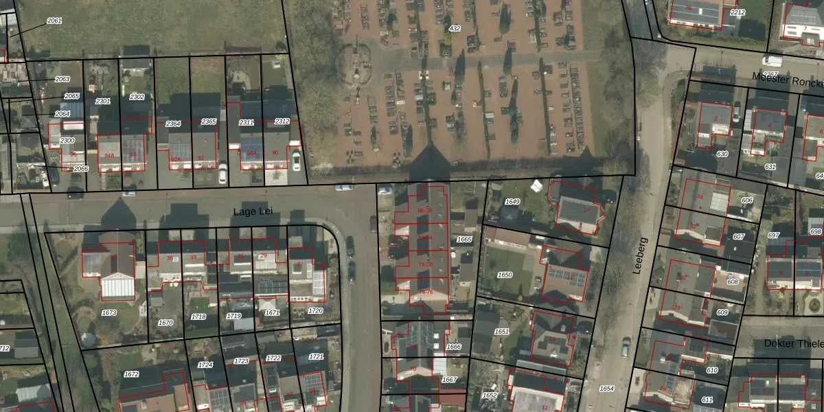 Het perceel waarop Lage Lei 88 staat heeft een oppervlakte van 825 m². Dit is een groot perceel. De perceeloppervlakte wordt geregistreerd door het Kadaster. Gedetailleerde informatie over de maten van dit perceel kunt u vinden in het rapport Kadastrale kaart met maatvoering van Lage Lei 88.