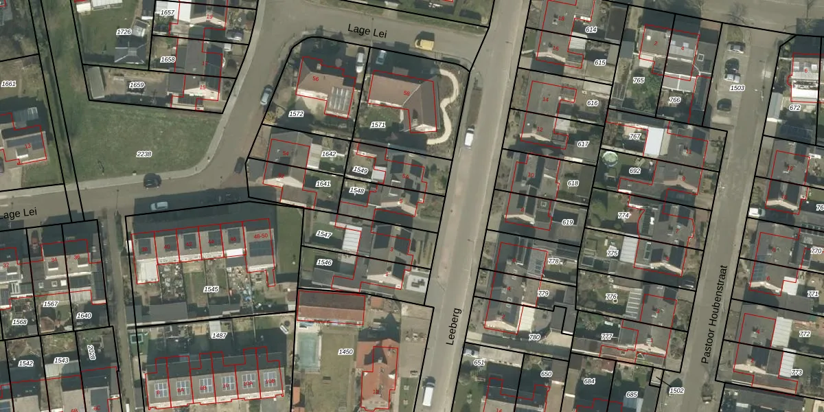 Gebruik de zoekbalk of klik op een perceel voor informatie over de adressen binnen dit perceel.