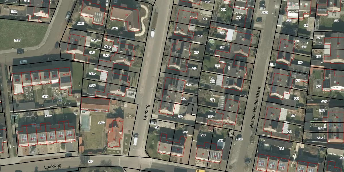 Gebruik de zoekbalk of klik op een perceel voor informatie over de adressen binnen dit perceel.