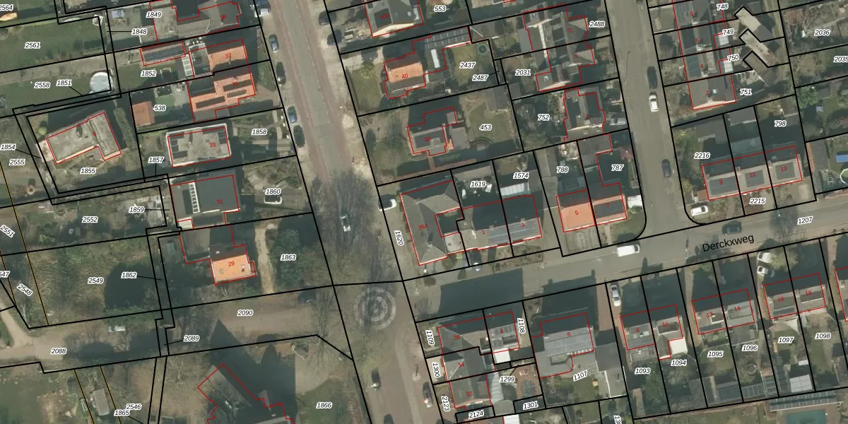 Gebruik de zoekbalk of klik op een perceel voor informatie over de adressen binnen dit perceel.