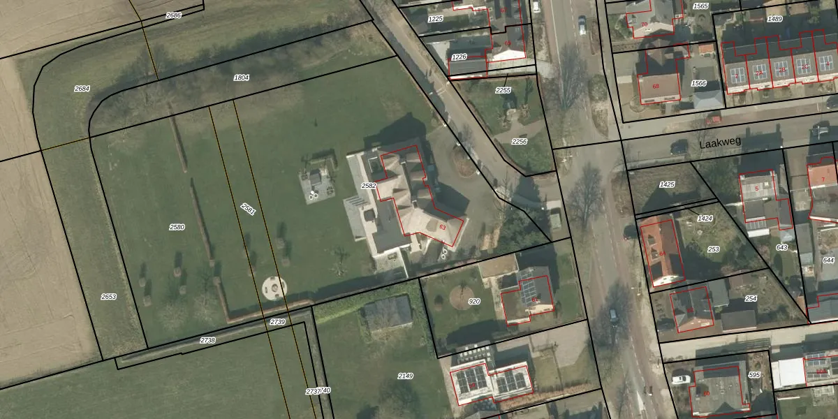 Maasstraat 63 is gelegen op kadastraal perceel ACN00D2582. Deze kadastrale aanduiding is uniek en wordt gebruikt door het Kadaster om eigendomsrechten en andere zakelijke rechten vast te leggen. Het perceel maakt onderdeel uit van de kadastrale gemeente Arcen en Velden.