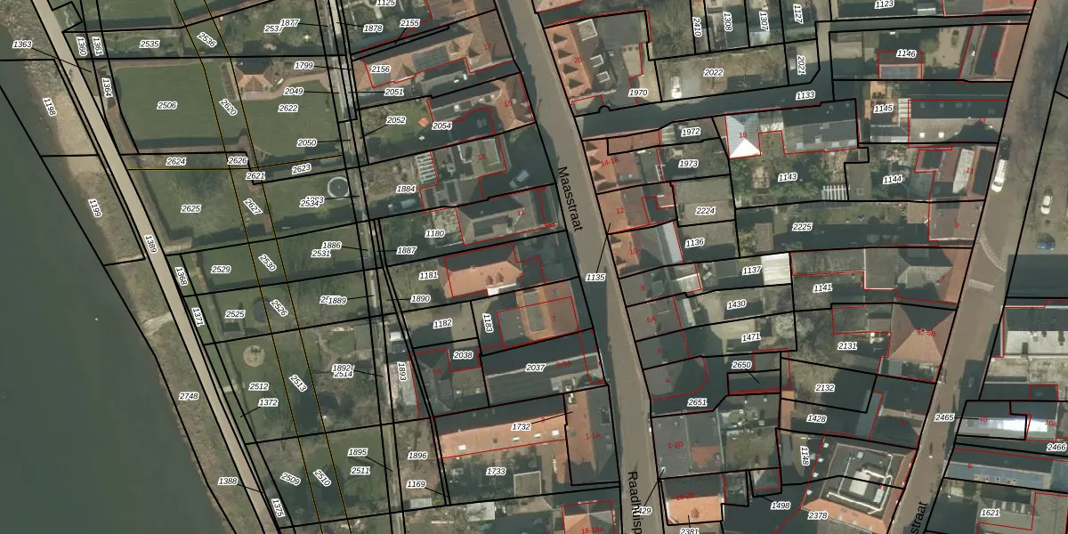 Maasstraat 9 is gelegen op kadastraal perceel ACN00D1181. Deze kadastrale aanduiding is uniek en wordt gebruikt door het Kadaster om eigendomsrechten en andere zakelijke rechten vast te leggen. Het perceel maakt onderdeel uit van de kadastrale gemeente Arcen en Velden.