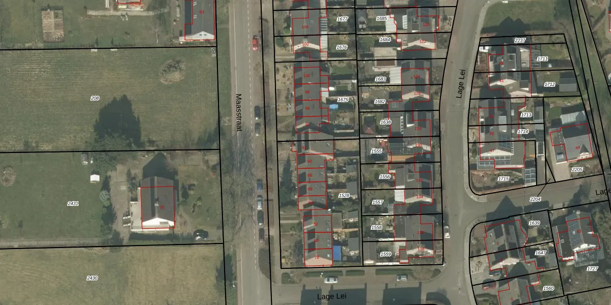 Maasstraat 92 is gelegen op kadastraal perceel ACN00D1528. Deze kadastrale aanduiding is uniek en wordt gebruikt door het Kadaster om eigendomsrechten en andere zakelijke rechten vast te leggen. Het perceel maakt onderdeel uit van de kadastrale gemeente Arcen en Velden.