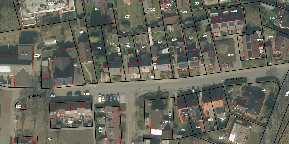 Gebruik de zoekbalk of klik op een perceel voor informatie over de adressen binnen dit perceel.