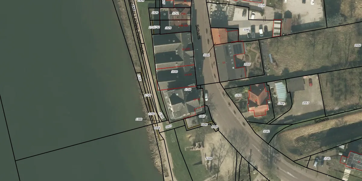 Het perceel waarop Schans 16 staat heeft een oppervlakte van 1029 m². Dit is een zeer groot perceel. De perceeloppervlakte wordt geregistreerd door het Kadaster. Gedetailleerde informatie over de maten van dit perceel kunt u vinden in het rapport Kadastrale kaart met maatvoering van Schans 16.