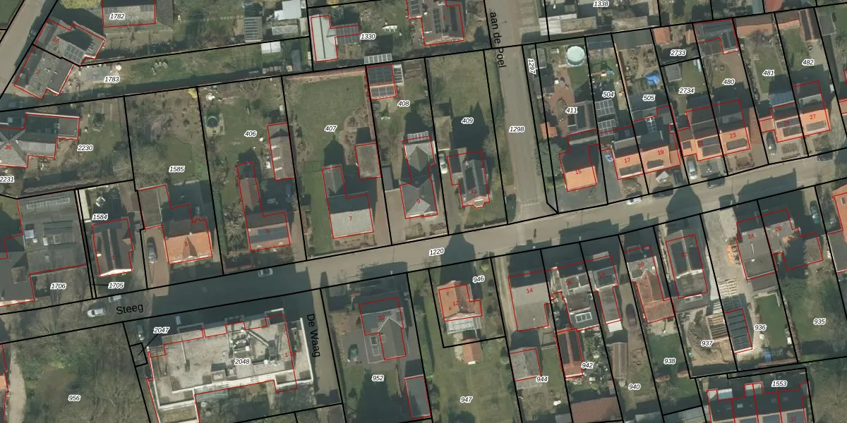 Gebruik de zoekbalk of klik op een perceel voor informatie over de adressen binnen dit perceel.