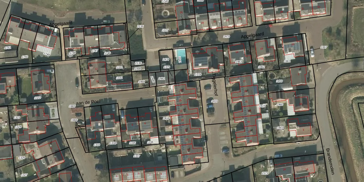 Het perceel waarop Tiggelerhof 25 staat heeft een oppervlakte van 1107 m². Dit is een zeer groot perceel. De perceeloppervlakte wordt geregistreerd door het Kadaster. Gedetailleerde informatie over de maten van dit perceel kunt u vinden in het rapport Kadastrale kaart met maatvoering van Tiggelerhof 25.