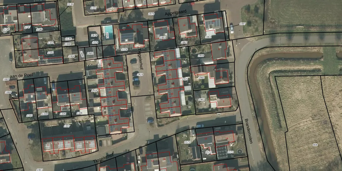 Het perceel waarop Tiggelerhof 33 staat heeft een oppervlakte van 906 m². Dit is een groot perceel. De perceeloppervlakte wordt geregistreerd door het Kadaster. Gedetailleerde informatie over de maten van dit perceel kunt u vinden in het rapport Kadastrale kaart met maatvoering van Tiggelerhof 33.
