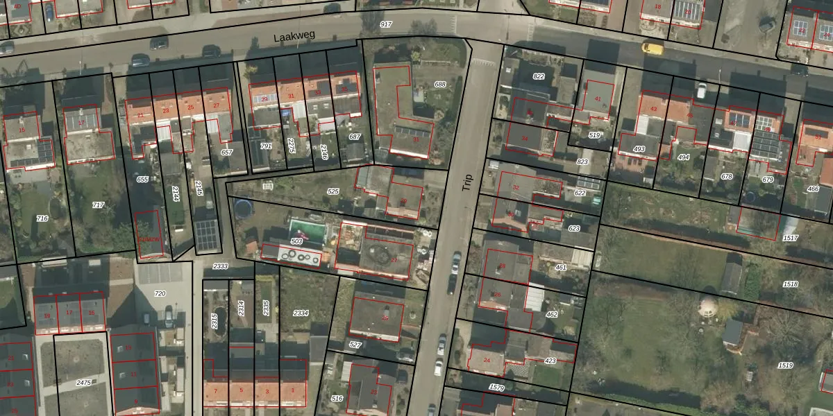 Gebruik de zoekbalk of klik op een perceel voor informatie over de adressen binnen dit perceel.