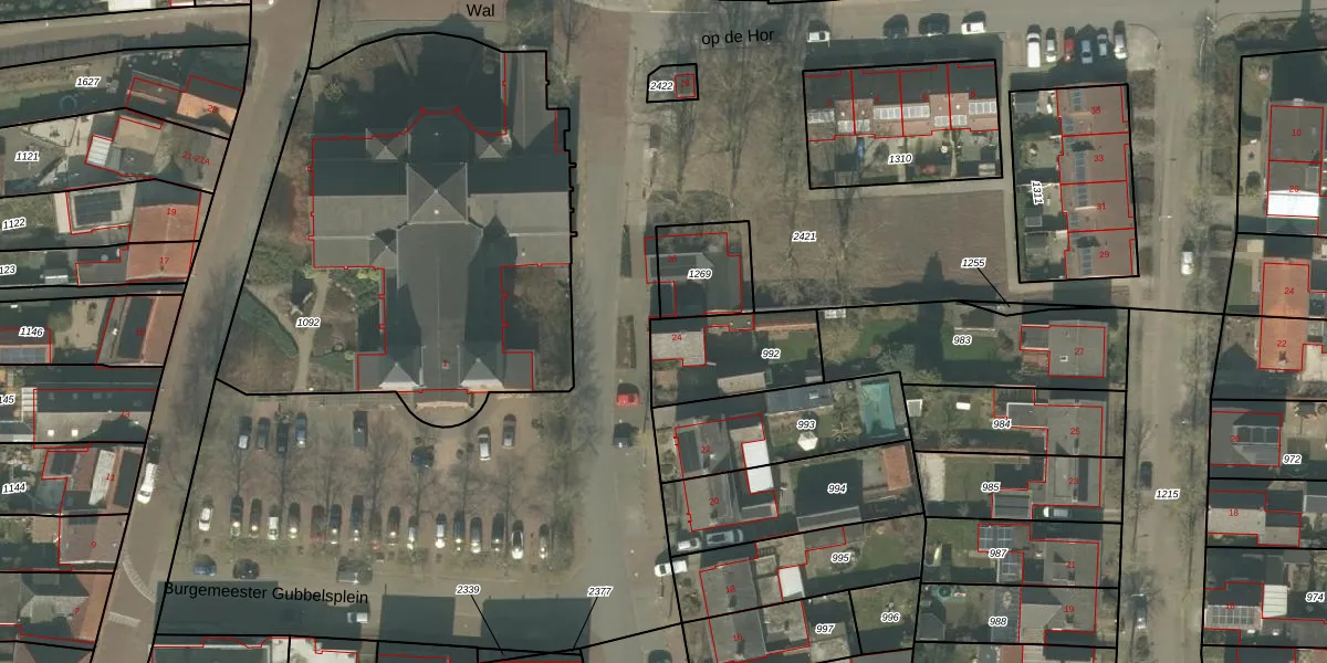 Het perceel waarop Wal 24 staat heeft een oppervlakte van 315 m². Dit is een groot perceel. De perceeloppervlakte wordt geregistreerd door het Kadaster. Gedetailleerde informatie over de maten van dit perceel kunt u vinden in het rapport Kadastrale kaart met maatvoering van Wal 24.