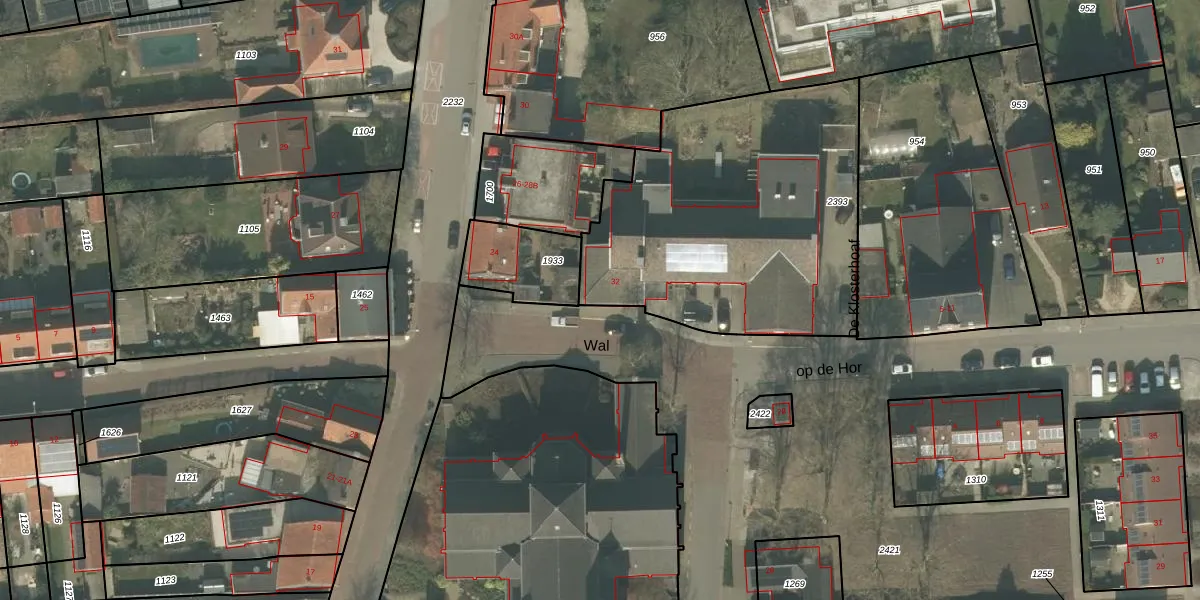 Het perceel waarop Wal 32 staat heeft een oppervlakte van 1585 m². Dit is een zeer groot perceel. De perceeloppervlakte wordt geregistreerd door het Kadaster. Gedetailleerde informatie over de maten van dit perceel kunt u vinden in het rapport Kadastrale kaart met maatvoering van Wal 32.